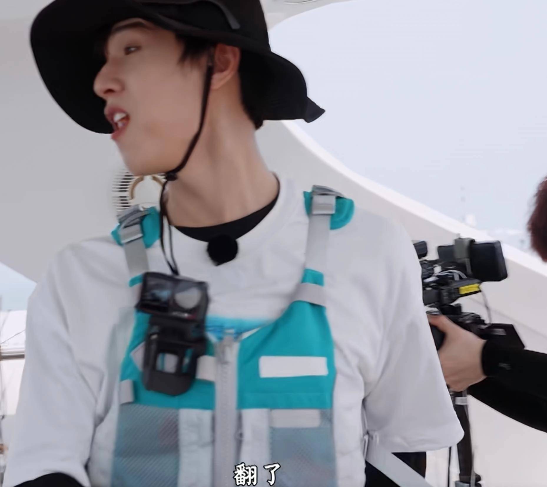 白鹿前一秒还极为自信地宣称自己不用扶手,下一秒就径直与孟子义一同翻进海里。